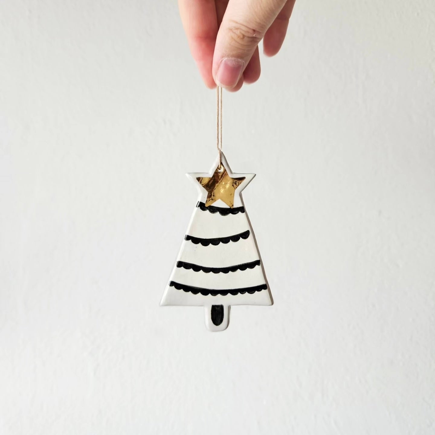The Xmas Trees come in sets of 3 in a range of different black and white designs with a 24karat gold star. Designs are chosen at random.